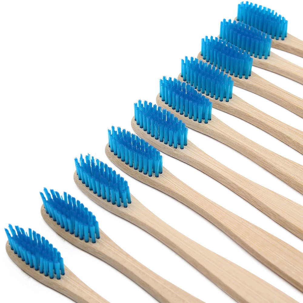 Discount 8 PCS Blue Bamboo Toothbrush Novelty Blue Wood Teeth Brush soft-bristle Bamboo Fibre Wooden Handle