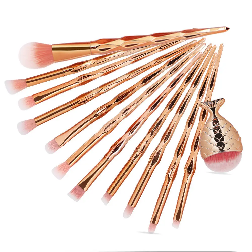 Great buy 7/10/11pcs Diamond Gold Makeup Brushes Set Mermaid Fishtail Shaped Foundation Powder Cosmetics Brus
