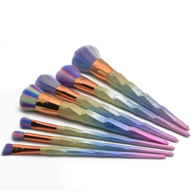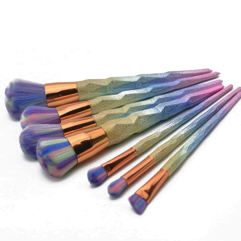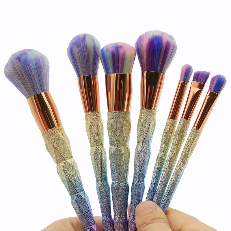 Clearance 7pcs/set Rainbow Hair Diamond Cosmetic Makeup Brushes Set Foundation Eye shadow Blusher Powder Unic